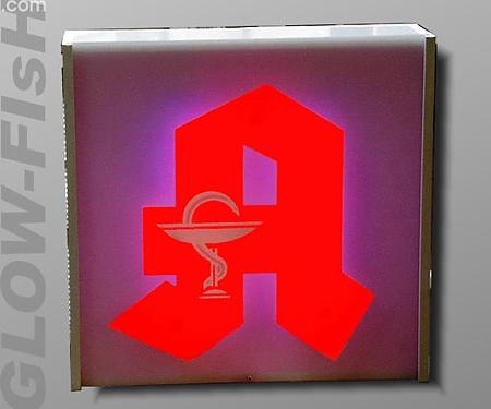 Zwei 8 watt UV-Scharzlichtlampe im inneren bringt das ganze Schild zum leuchten.