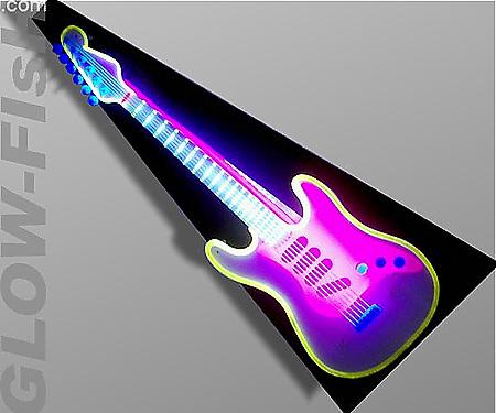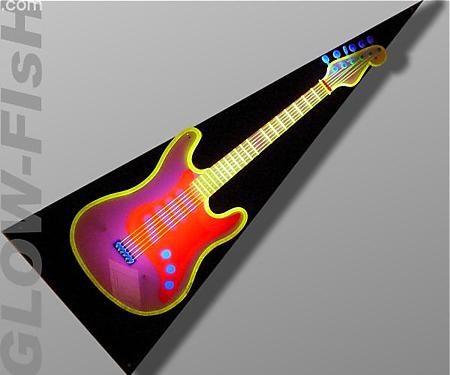 Die Leuchtgitarre wird von einer Schwarzlichtröhre beleuchtet.